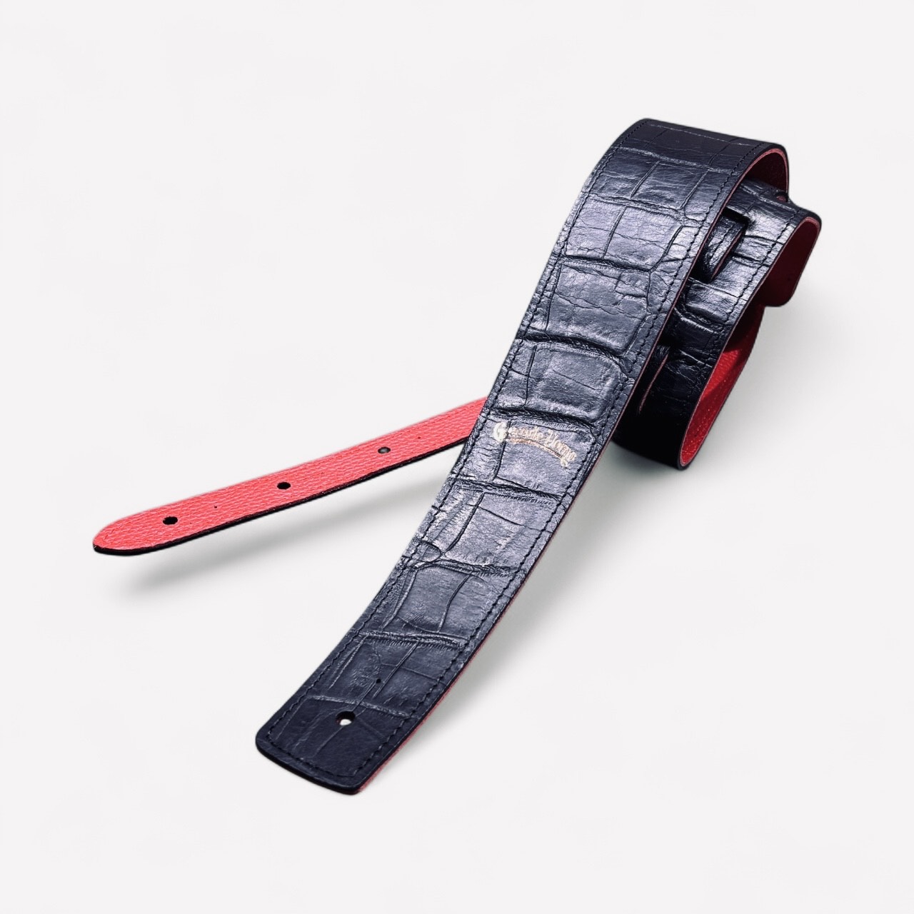 G-Premium表革は最高級のヌメ革や、非常に柔らかい国産の天然主リングレザーを手染め、裏革には鮮やかな発色のイタリアンレザー。このイタリアンレザーは水や傷に強く、そして色移りの心配がほとんどないのが特徴で、ギターストラップに最適なレザーです。