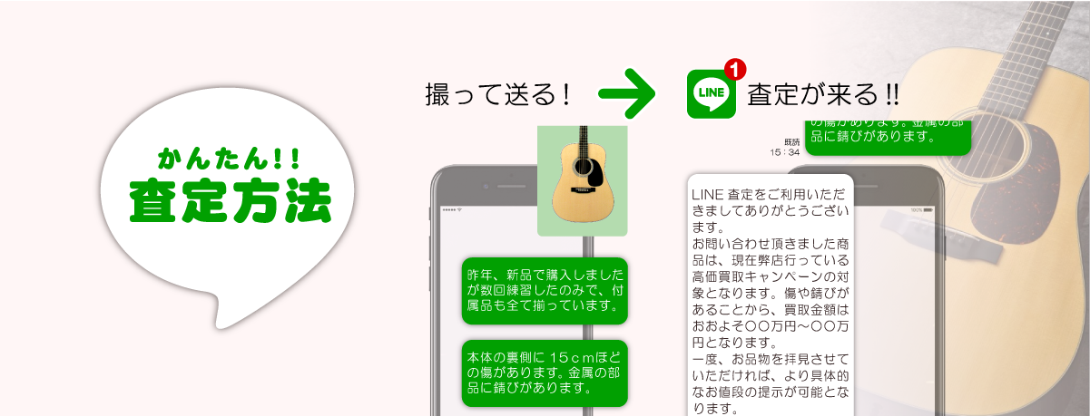 ※LINE査定は簡易的な査定となります。実物を拝見させていただいての査定と買取金額が変動する場合がございます。