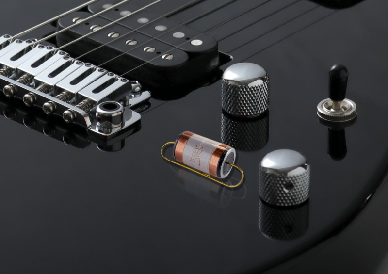 コンデンサーには国産ハンドメイドエフェクターブランドとして、 人気の高いOvaltone製の鵺 DEVICE BIANCOを搭載。 使用しているギターと使用していないギターではサウンドのクリアさ、 サウンドのスピード感が数段違っており、 高価なパーツではありますが今回のモデルには欠かせないサウンドの要として採用致しました。