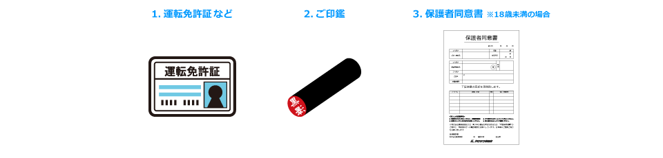 買取り手続きの際に下記の2点(18歳未満または高校生の場合は保護者承諾書含め3点)が必要となります。