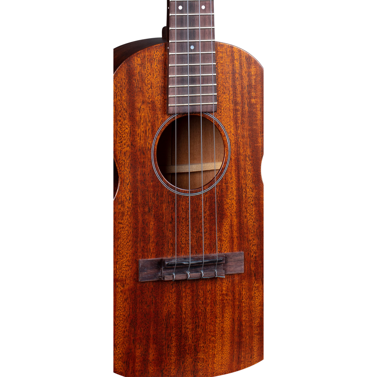 0テナーウクレレは、ベリーズの川底から引き揚げられたシンカーマホガニーをネック、トップ、バック、サイドに使用しています。シンカー・マホガニーは緻密で複雑なトーンを持ち、このモデルを際立たせています。
