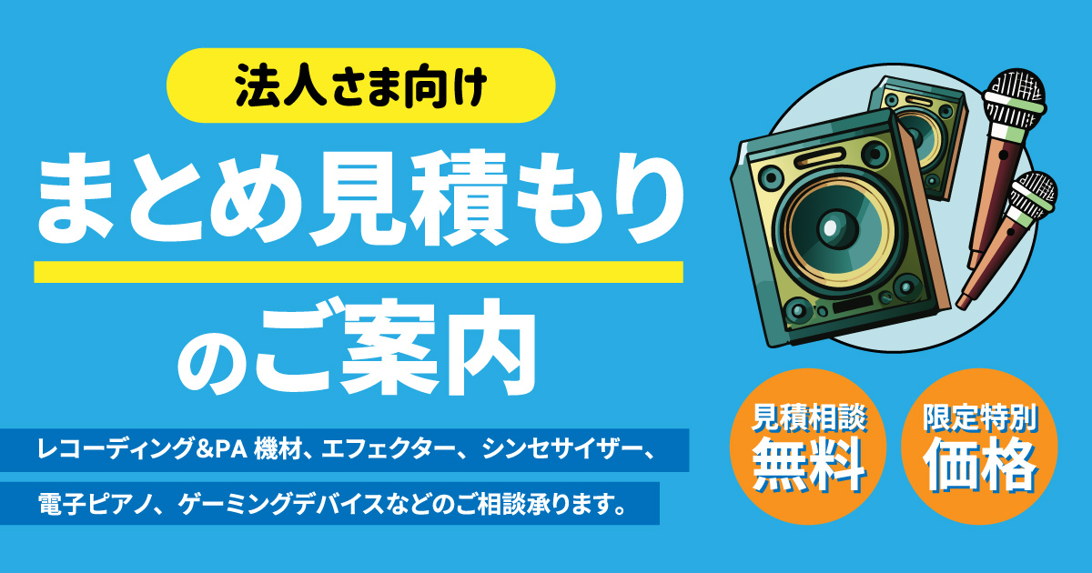 レコーディング&PA機材、エフェクター、シンセサイザー、電子ピアノ、ゲーミングデバイスなどの法人様向けまとめ見積もり承ります。