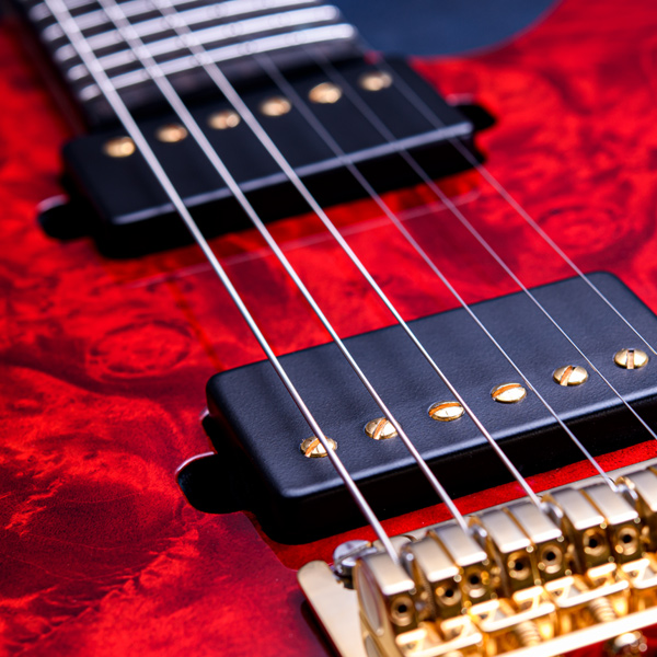 Impulseはテレキャスターを彷彿とさせるシングルカットのボディシェイプをオフセットさせ、シャープなアウトラインを追加したデザインとなっています。見た目の第一印象を決定づけるボディトップ材には厳選されたキルトメイプル材をセレクトし、鮮やかなレッドステインにて着色を行ったカラーリングに仕上がっております。独創的なアウトラインも目を惹きますが、ボディ全周にわたってベベルド(面)カットが入れられており、良好な体へのフィット感はもちろん、見た目のアクセントにも一役買っております。