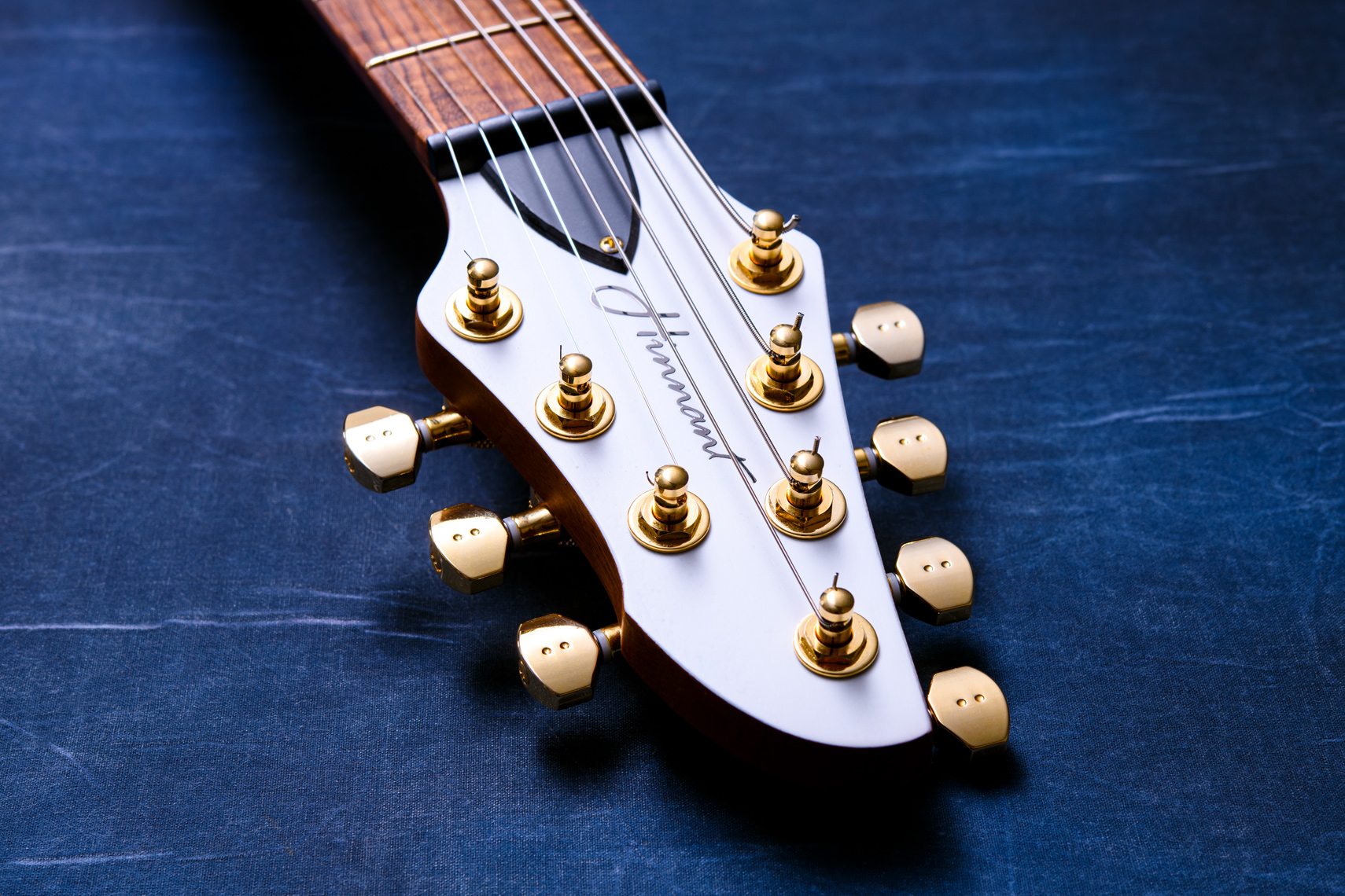 名前に "復活" の意味を持つ、ヒナント氏の培ったアイデアを具現化した「Hinnant Guitars」の看板機種ともいえるモデル。トラディショナルなテレキャスターシェイプをベースにしながらも、ハードなサウンドとプレイアビリティが求められるミュージックシーンでの使用に耐えうるべく設計された一本です。