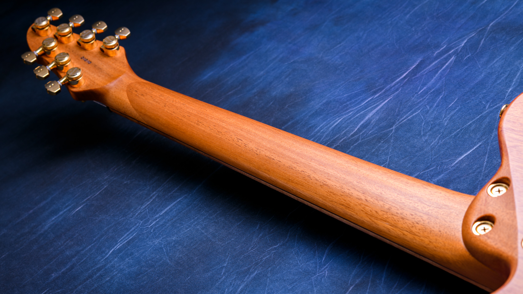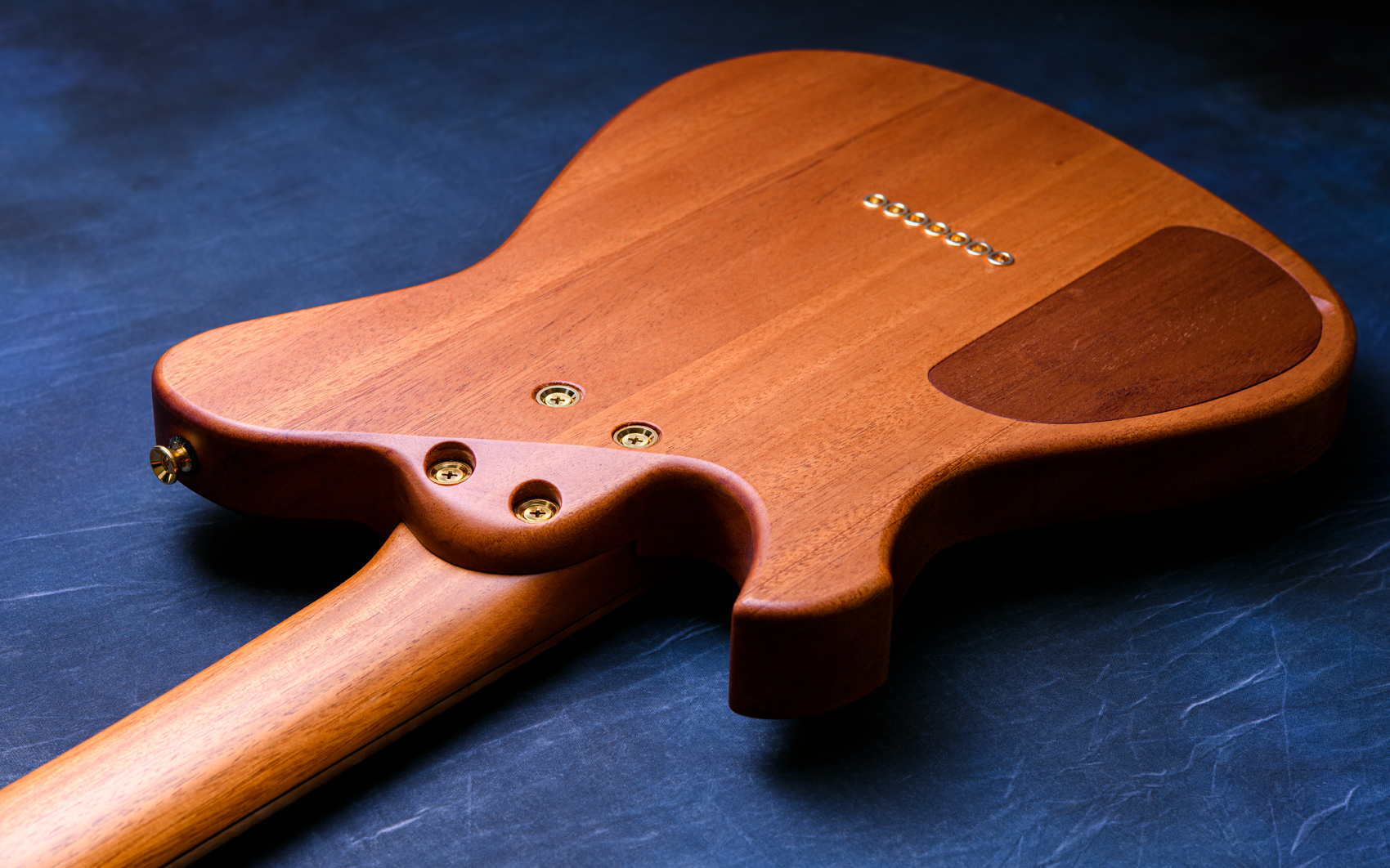 スケールの長さと硬質な指板材からなるコシのあるアタックとダイレクトな弦振動に、マホガニーの魅力的な倍音が合わさった非常にバランスの取れたサウンドに仕上がっています。