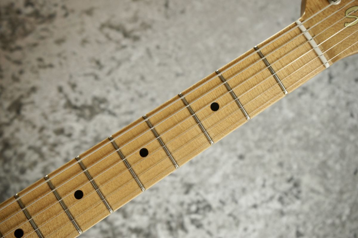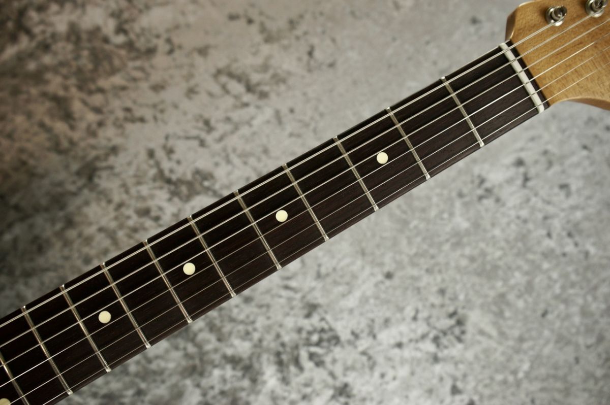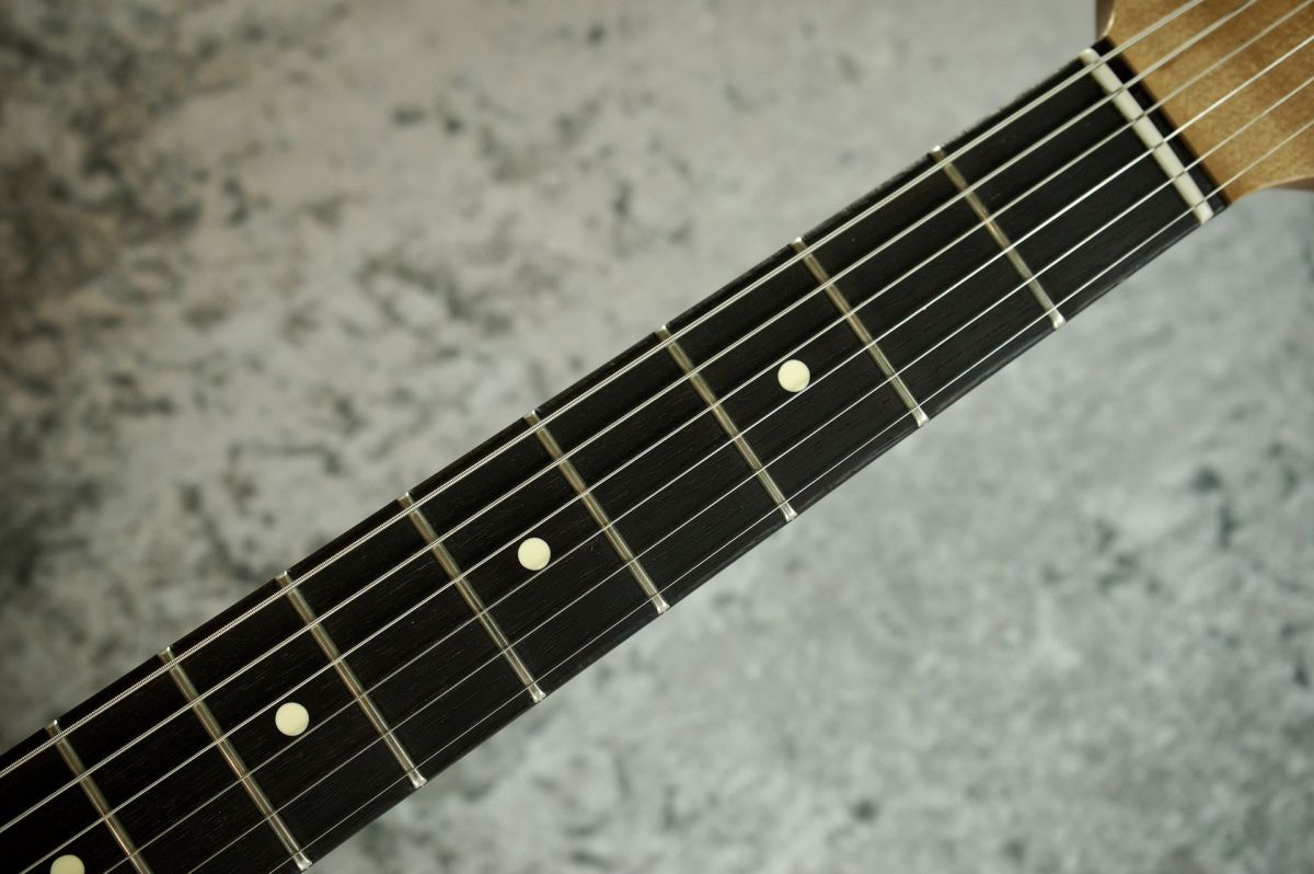 トラディショナルな仕様のSスタイルとTスタイルを作成して頂きました。非常にしっかりと選定されたマテリアルとオリジナルのピックアップ、スムーズな演奏性に1本1本違いのあるコンセプトの伝わるサウンドアプローチは、 圧巻の一言です。