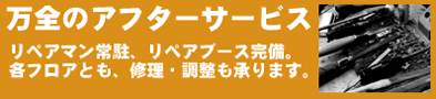 各フロアには専門のリペアマンが常駐、リペアブースも完備していますので、楽器の修理・調整に関することもおまかせください。