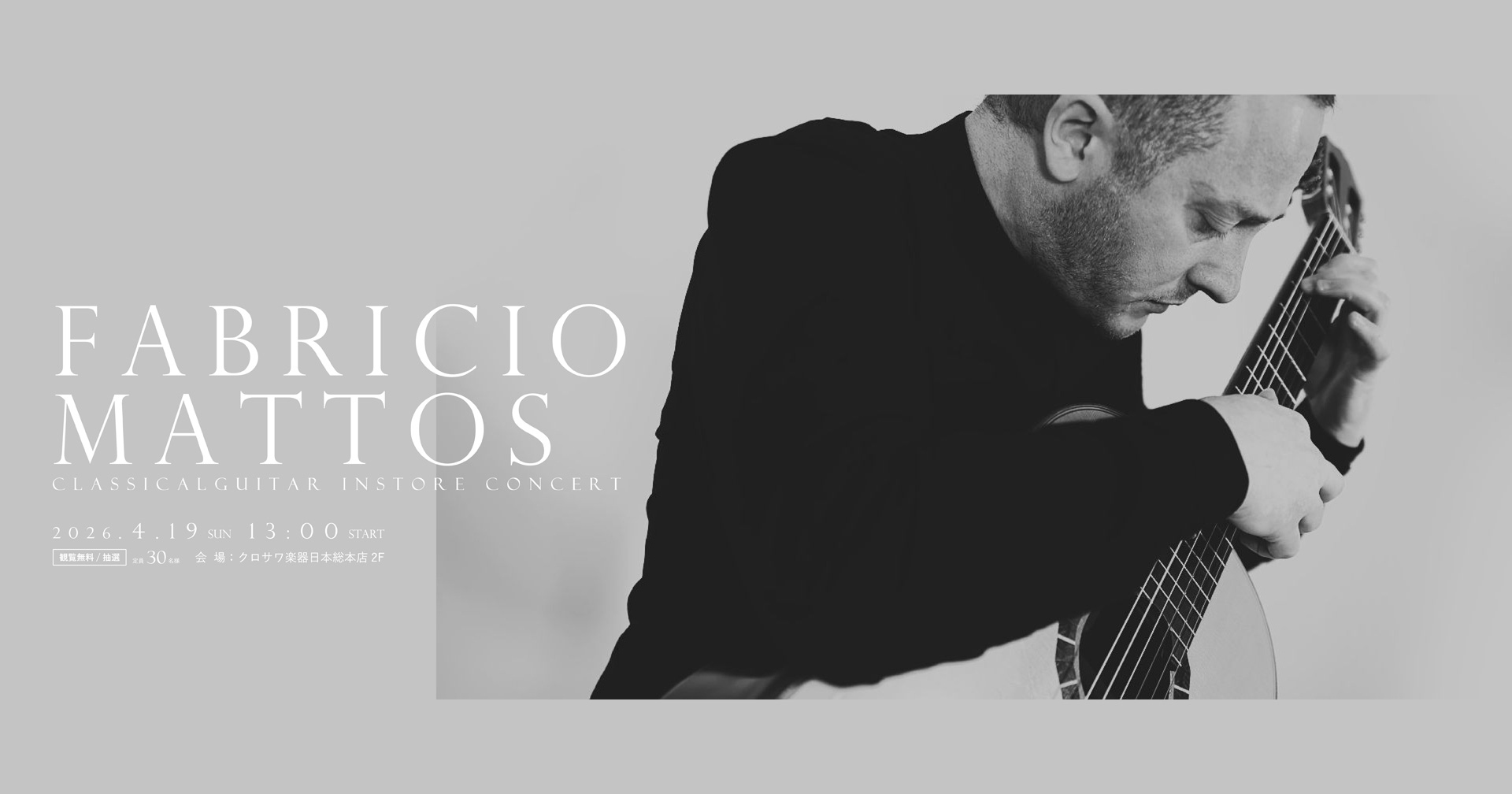 受賞:ジュリアン・ブリーム賞。博士号:ロイヤル・アカデミー・オブ・ミュージック(ロンドン)。ファブリシオ・マットスは、ロンドンを拠点に活動するクラシックギタリストであり、音楽演奏の研究者です。21世紀の音楽創造における新たな道筋を模索することに深く情熱を注ぎ、ソロ奏者および室内楽奏者として五大大陸で定期的に演奏活動を行っています。活動範囲は、イギリス、イタリア、スイスなどの主要音楽都市から、中国、ベトナム、ミャンマー、ザンビアなどコンサート文化が発展途上の国々まで及びます。これまでに数多くのレコーディングを発表し、複数の国際コンサートツアーを実施。伝説的な英国のギタリスト、ジュリアン・ブリーム本人より直接授与された名誉あるジュリアン・ブリーム賞をはじめ、数々の賞を受賞しています。マットスはこれまでに、多様な国籍や背景、スタイルを持つ数十人の作曲家、演奏家、詩人、舞踊家、その他の芸術家とコラボレーションし、ギター演奏の現在と未来の双方を豊かにしてきました。近年はほぼ共同制作プロジェクトに専念しており、他のクリエイティブな専門家たちとの献身的かつ情熱的な協働によってのみ可能となる、活気あふれる芸術的成果を生み出しています。この芸術的ビジョンが最も顕著に結実したのが、WGC (ワールドワイド・ギター・コネクションズ)です。WGC は2011年に設立された創造的事業で、マットス氏はこれまで WGC を通じて27カ国を訪問しました。WGC は、世界中の才能ある作曲家の作品を、特別にカスタマイズされた形式で紹介しながら、様々な方法で音楽制作の可能性を広げてきました。