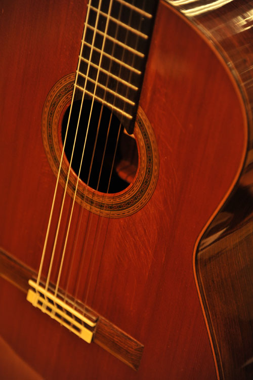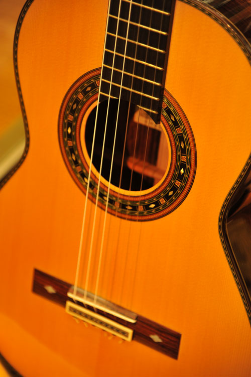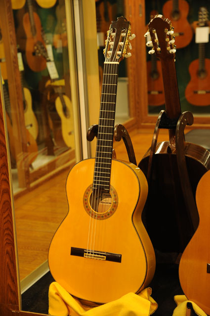 スペイン南部、アンダルシアの古都、セビージャに知る人ぞ知るフラメンコギターの銘工が工房を構えている。グラナダからどこまでも続くオリーブ畑を走り続けるバスに乗り、セビージャの工房を訪問したのが2年前の春。そこで幸運にも注文を受けていただけたフラメンコギターが遂に入荷致しました。 |