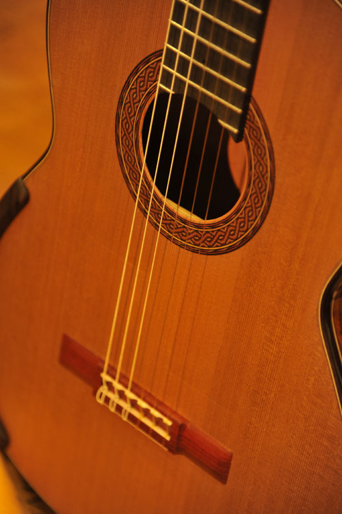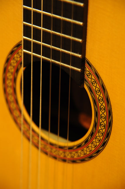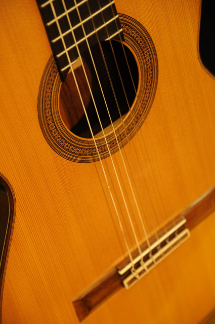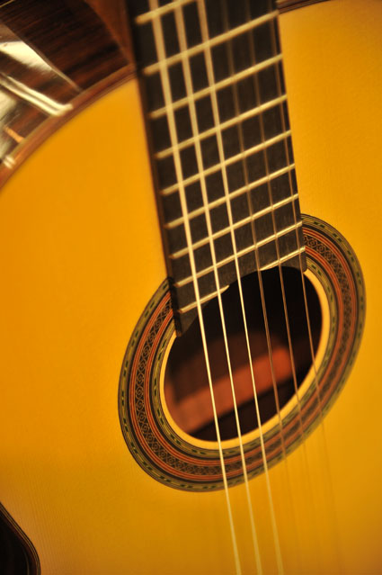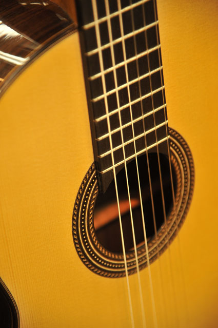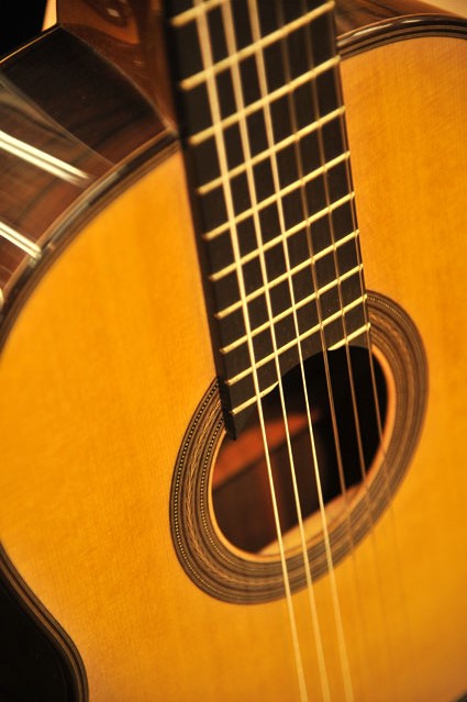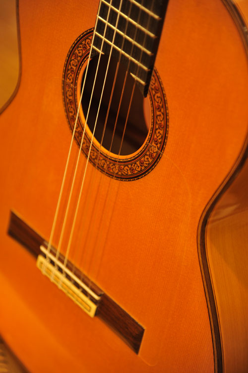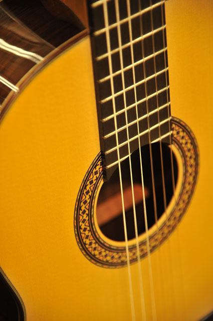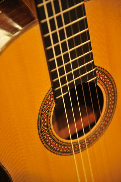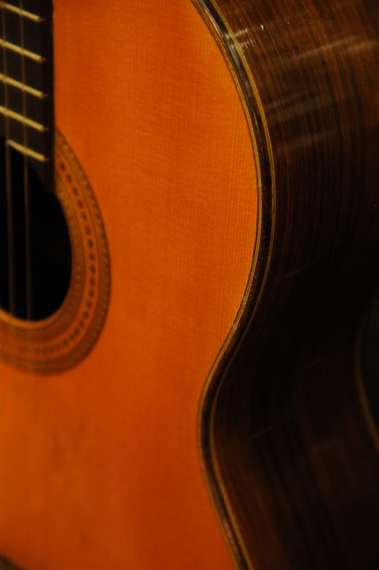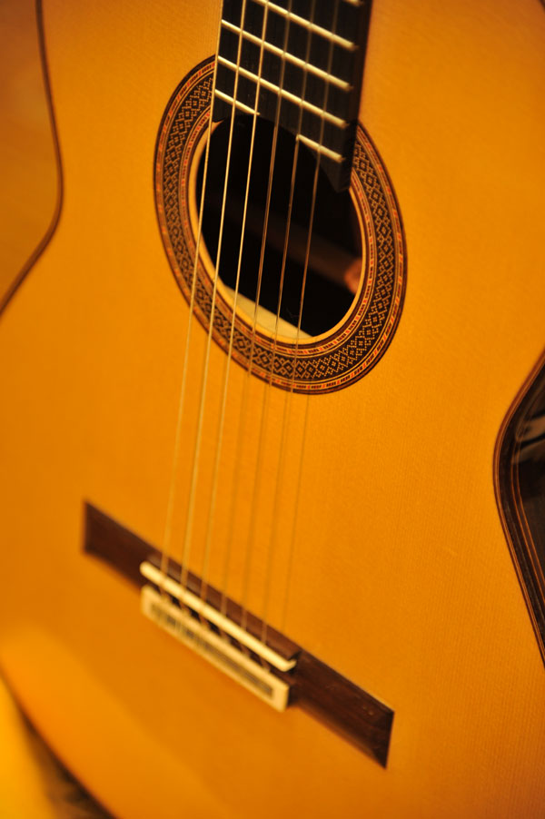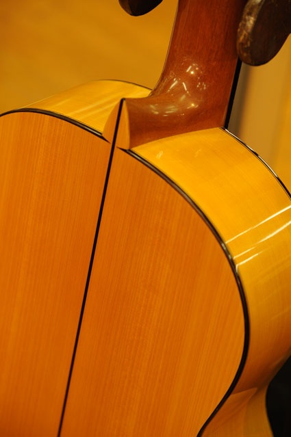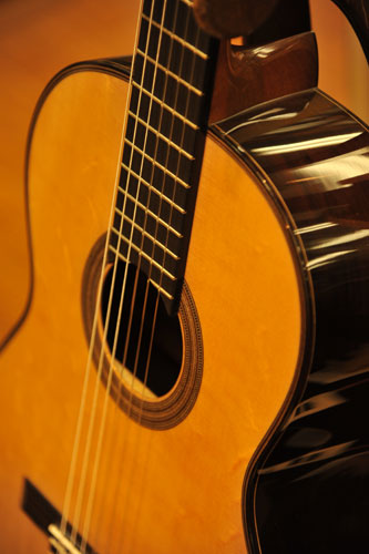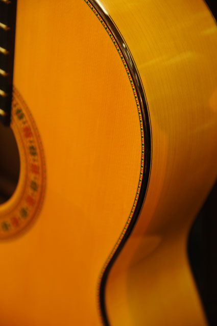 スペイン、カスティーリャのラマンチャで代々ギター製作を続けている、ビセンテ・カリージョの最新作フラメンコギター。 |