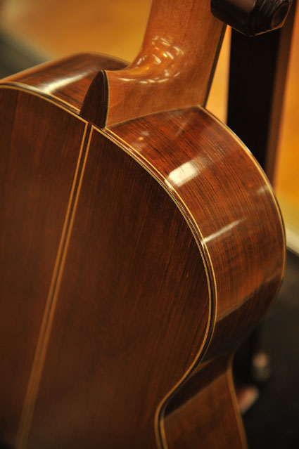 スペイン、マドリッドで、サントス・エルナンデス、マルセロ・バルベロ、アルカンヘル・フェルナンデスと脈々と受け継がれてきたギター製作、銘工の系譜。アルカンヘルが引退した現在、その製作技法を受け継ぐ製作家として、マヌエル・カセレスの名が第一に挙げられる。 |