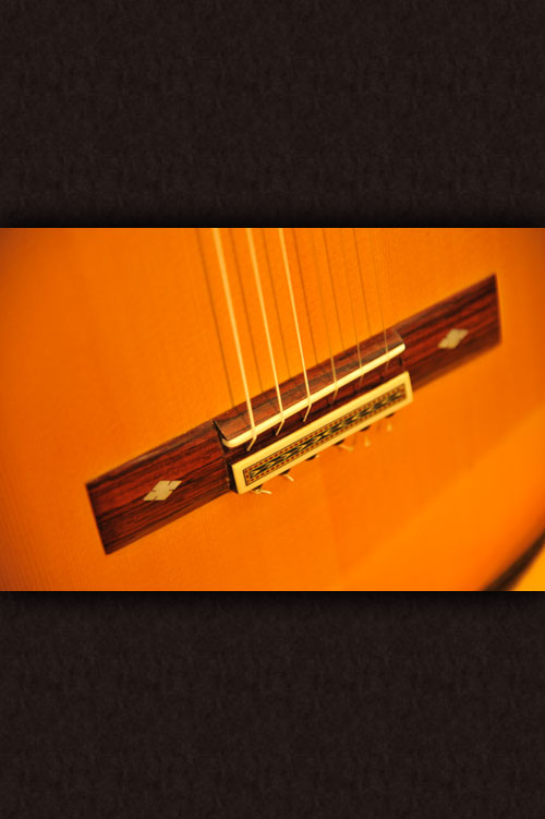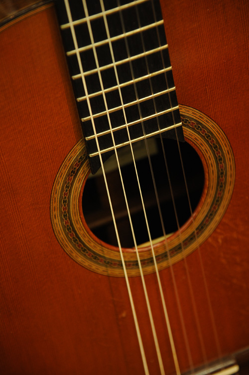 1931年スペイン マドリッドに生まれ、高級家具職人として14歳から働いたマルセリーノ・ロペスは、「アルハンブラの想い出」の作曲者である名ギタリスト、フランシスコ・タレガの高弟、ダニエル・フォルテアにギター演奏を師事した後、18歳でギター製作家とり、銘工サントス・エルナンデスの未亡人に多くの助言を得て、その製作技術は高い評価を得た。 |