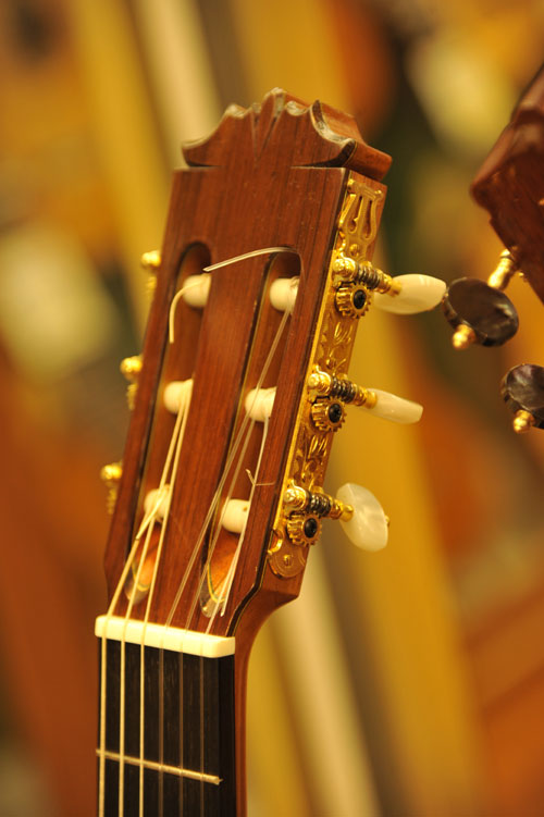 1955年マドリッドの南に位置するシウダーレアル生まれのグラシリアーノ・ペレスは9歳のときにコルドバに移り住みフラメンコギターを始めた。11歳の時、同じ通りに住んでいた、コルドバの銘工ミゲル・ロドリゲスと知り合い、親密になったペレスはミゲル・ロドリゲスからギター製作方法や材料の選別を学ぶ。コルドバ高等音楽院のマヌエル・カーノの元でフラメンコギター演奏を学び、上級コースまで受講とかなりの腕前となった彼は、ミゲル・ロドリゲスの死後、その全ての材料、工具を引き継いだ。彼のギターは、ミゲル・ロドリゲスのギターを徹底的に研究して製作されており、昨年秋に来日公演を行った世界的フラメンコギタリスト ビセンテ・アミーゴも認め、現在では多くのフラメンコギタリストがグラシリアーノ・ペレスが製作したフラメンコギターをコンサートで使用している。 |