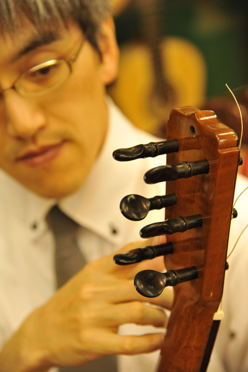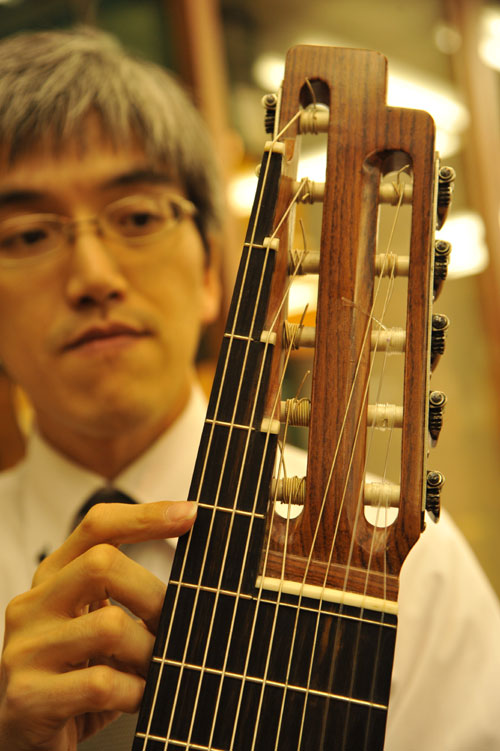 2010年からスペインマドリッドの名工アルカンヘル・フェルナンデスの工房にて製作を学び、2011年に惜しまれつつ引退したアルカンヘルよりその工房を引き継いだ。 |