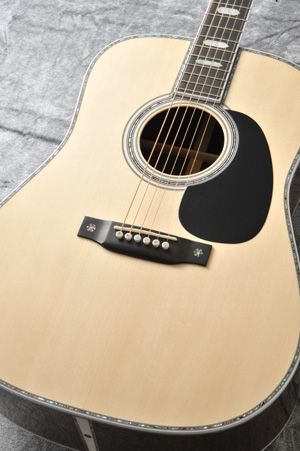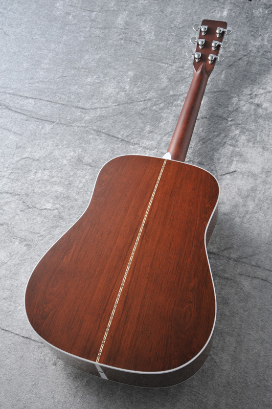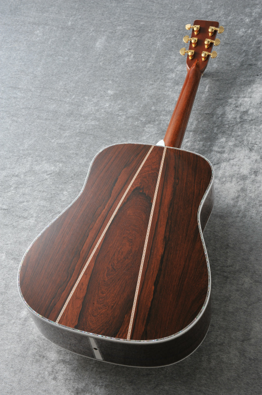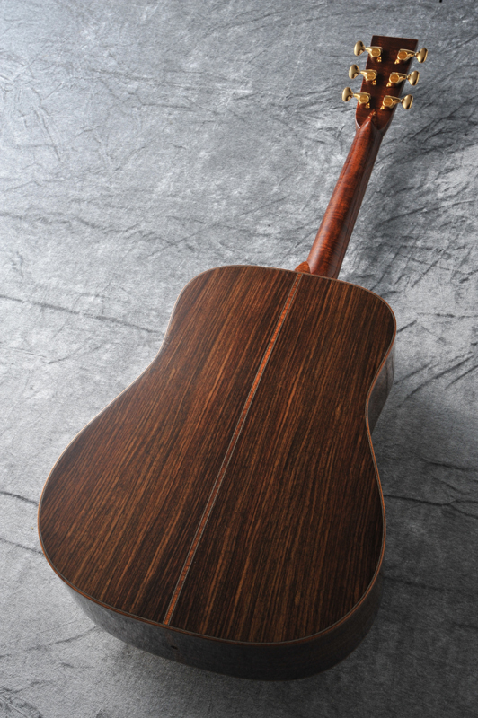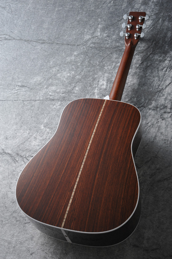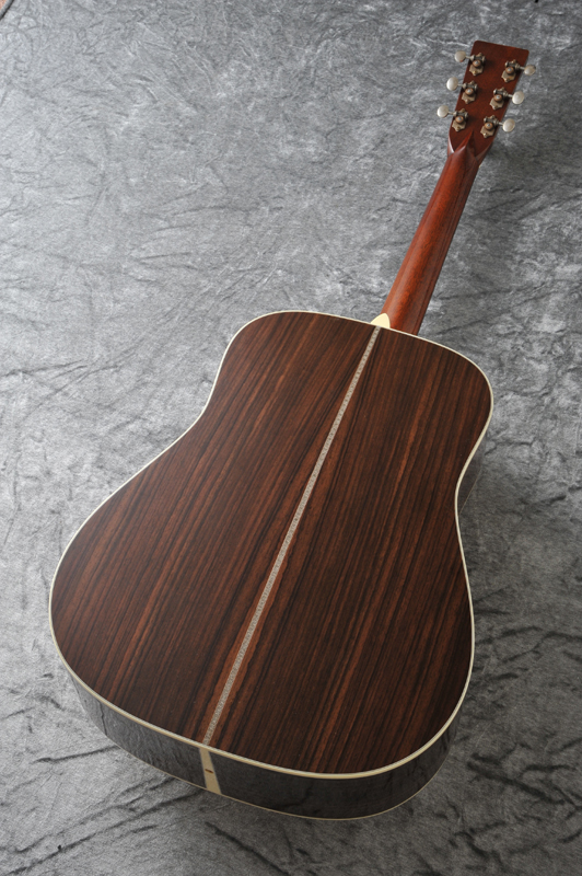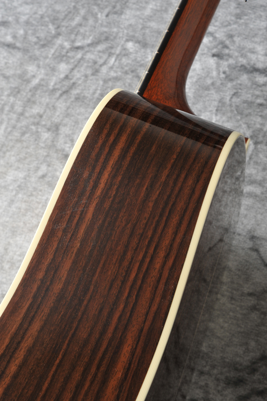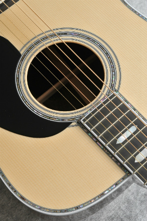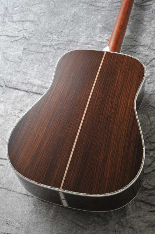 スタンダードD-28にはないシルキーで重厚なサウンド、入力をそのままボリュームに変えていくキャパシティの大きさ、パーカッシブなメリハリだけでなく楽器の「声」を聴かせてくる1本です。SQロッド+フルシックネスのネックはもはや定番といえますが、カスタムモデルは初めての方にもお勧めです。