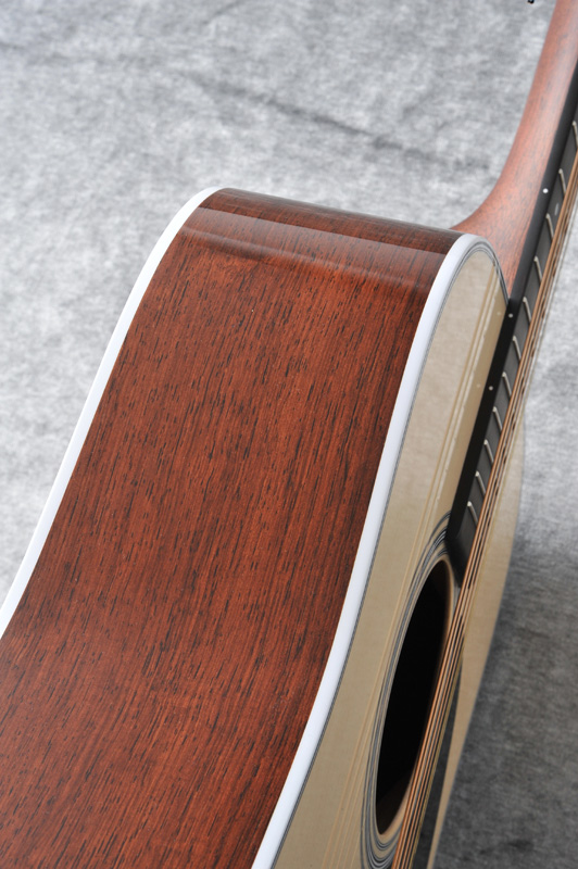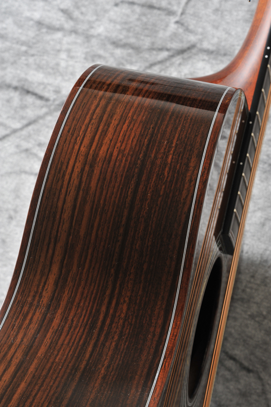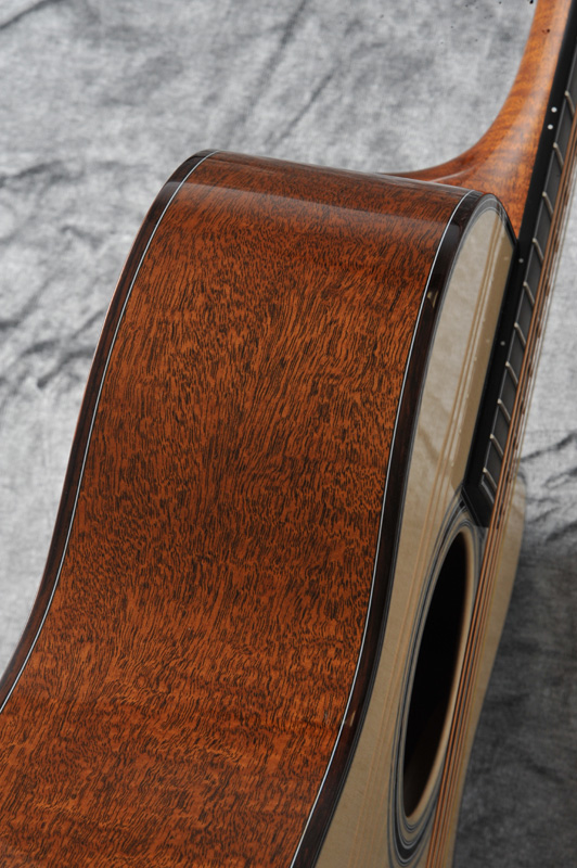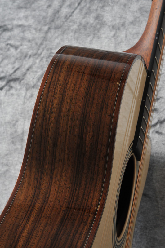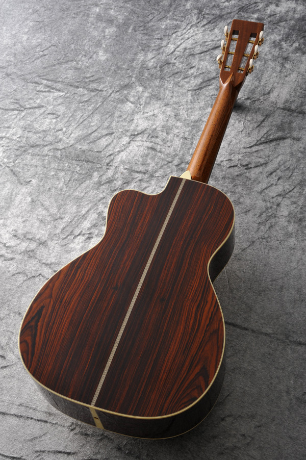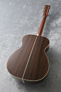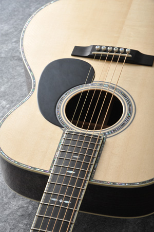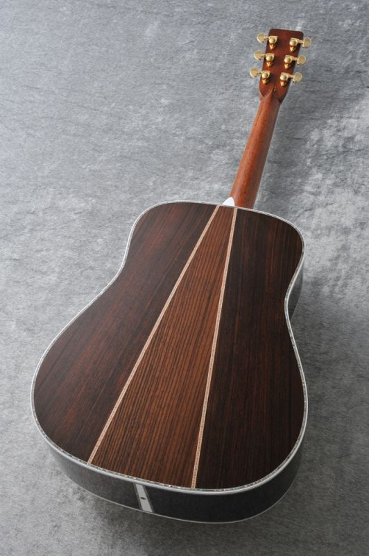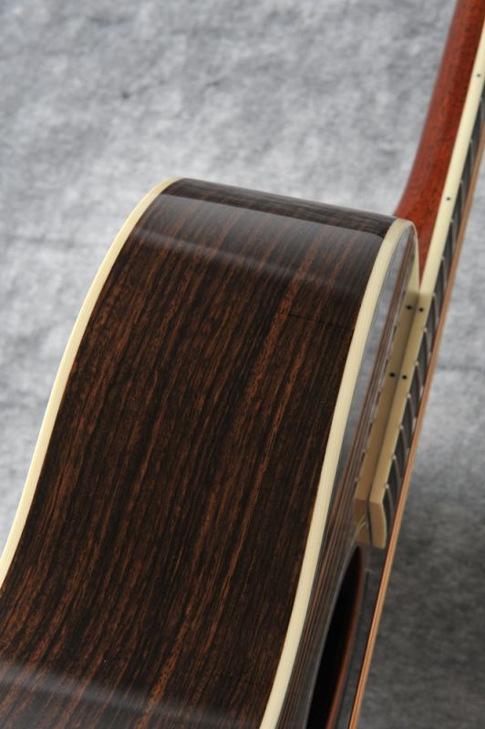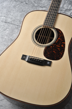 スタンダードD-28にはないシルキーで重厚なサウンド、入力をそのままボリュームに変えていくキャパシティの大きさ、パーカッシブなメリハリだけでなく楽器の「声」を聴かせてくる1本です。SQロッド+フルシックネスのネックはもはや定番といえますが、カスタムモデルは初めての方にもお勧めです。