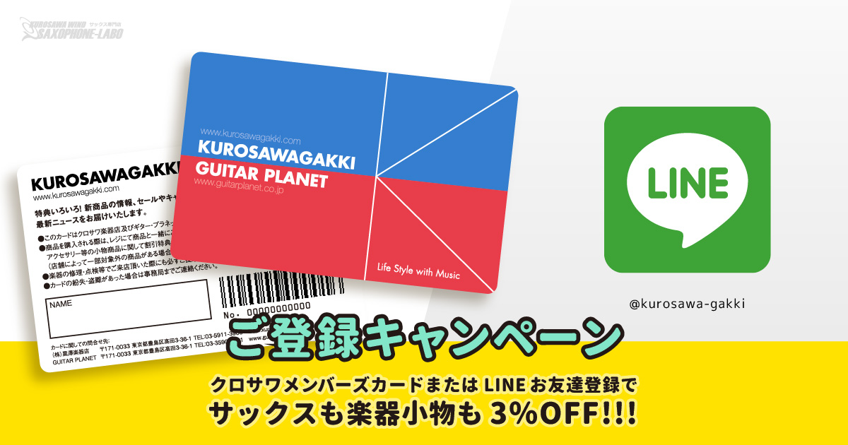 クロサワメンバーズカード提示またはご登録で楽器本体も小物もお買い得! お会計の際にご提示ください。ご登録も簡単!是非この機会にお申込み下さい。