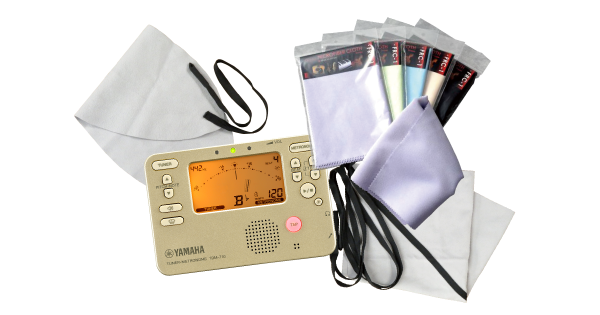 楽器のお手入れセットか、バードストラップからどちらかお好きな方をプレゼントいたします。