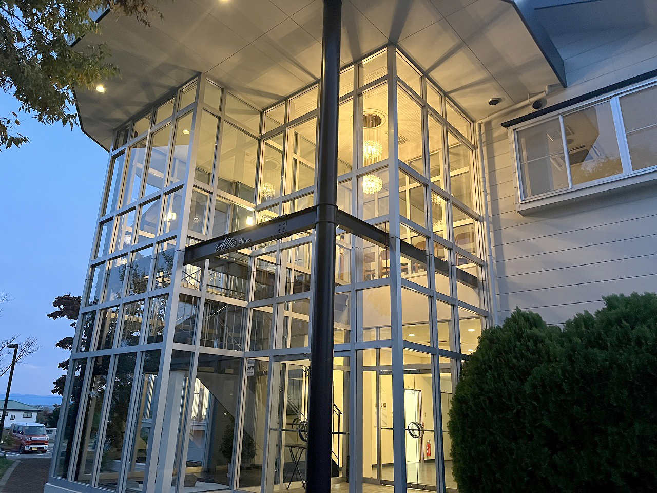 〇最後に.... お話しに花が咲いてしまい、気付いた頃には日が落ちていました...。笑 夜の光景も昼間とは一味違い、幻想的です。 アルタススケール、銀素材の豊富なラインナップ、 独自のこだわりにより、多くの魅力を持ち 数々のアーティストを魅了し、現在では 日本国内外に関わらず、多くの著名人に使用されているアルタスフルート。 今回私が見た光景、感じた魅力を 今後もご来店頂くお客様へお伝えしていきたいと思います。 |