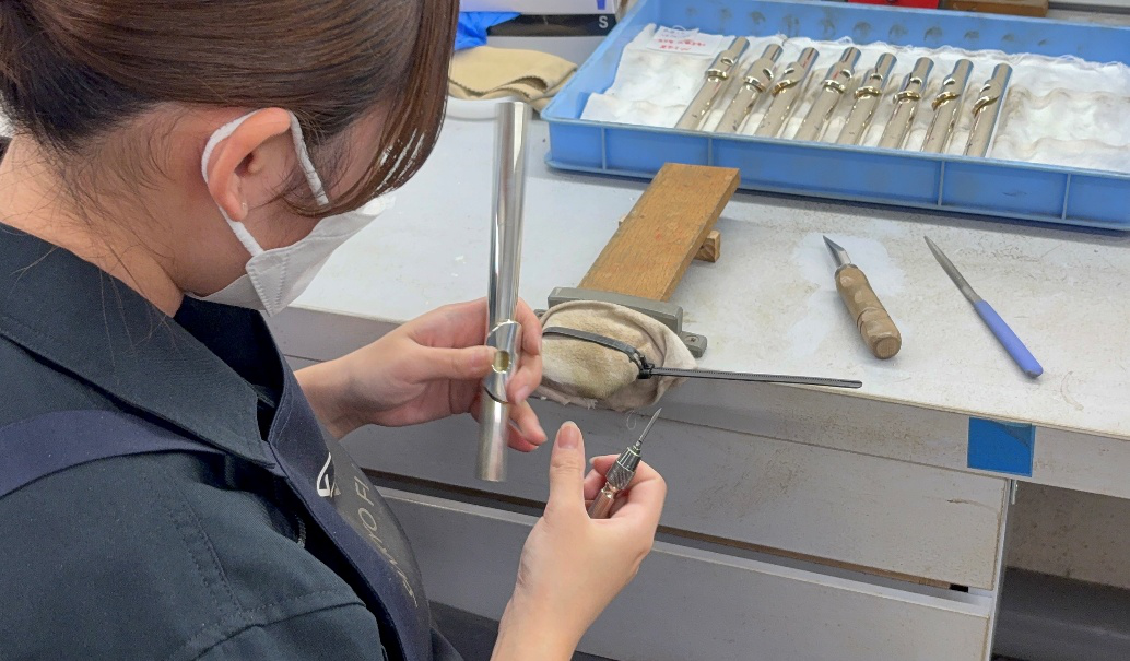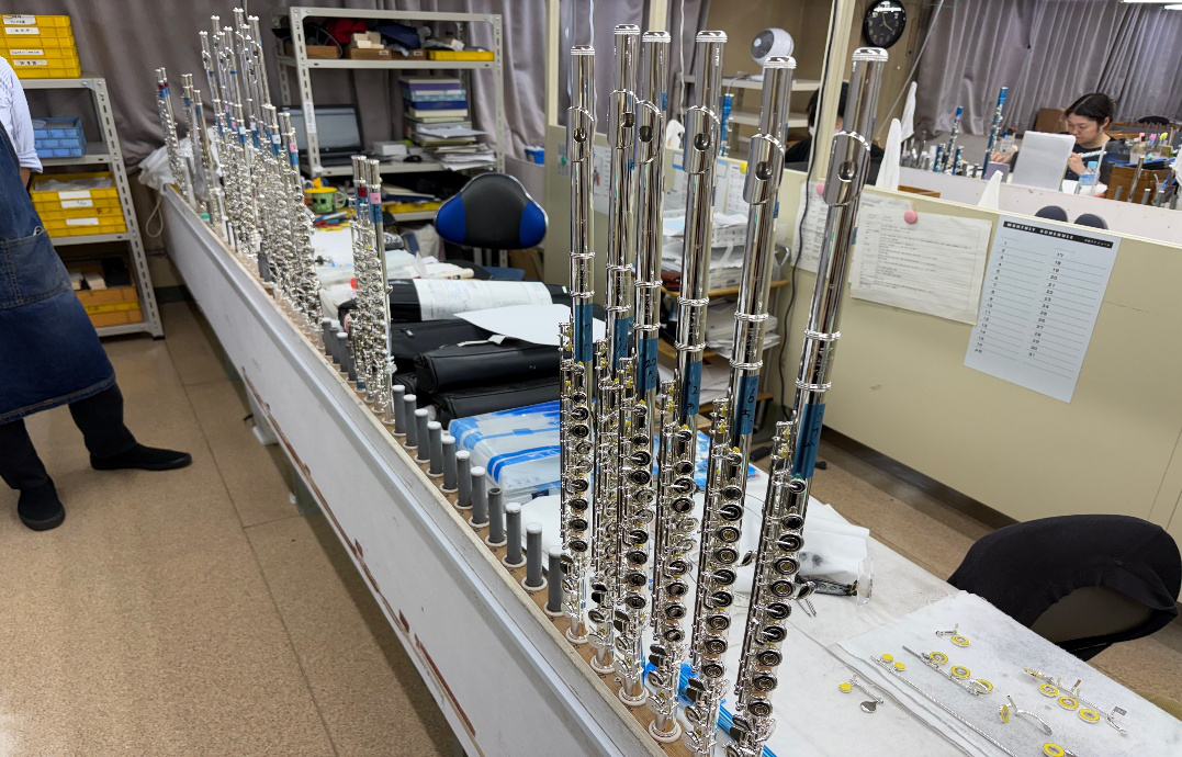 機械化が進む現代においても、 多くの工程が職人によるハンドメイドで行われておりました。 素材選びにも強いこだわりがあり、三響フルートらしい 音色を守り続けるための工夫が感じられました。 職人の方々への音への情熱とこだわりを、 私たち販売員がお客様へしっかりと伝えさせていただきます! |