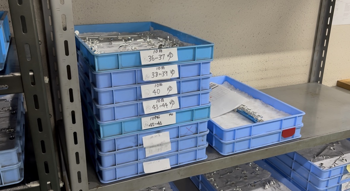 こちらの場所ではキィの組み込みまでを行っています。 パーツが一つ一つ分かりやすく管理されていますね。 |
