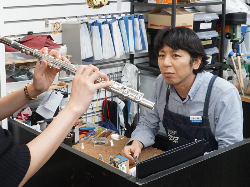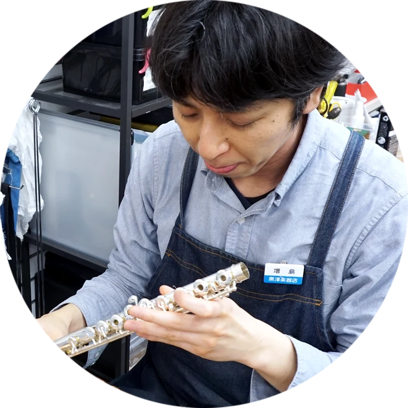 管楽器の専門店として、次にご購入いただくユーザー様にも長く使っていただけるよう、責任を持って調整を行います!担当は増島です。