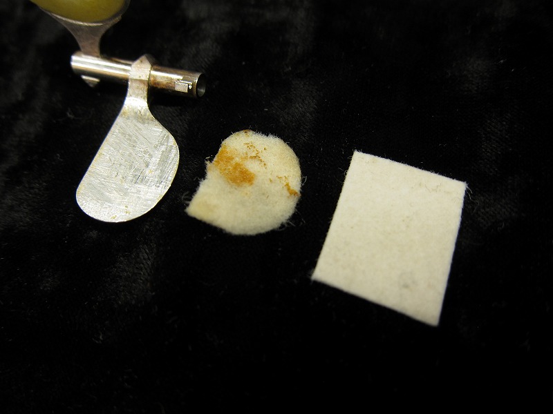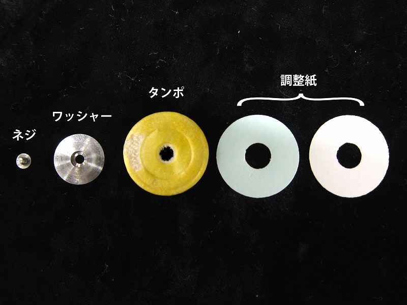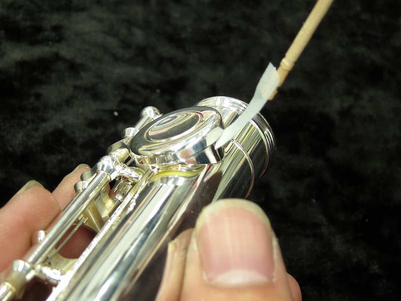 この調整紙の厚さ、枚数でタンポの出る量を調節し、しっかりトーンホールを塞ぐようにします。