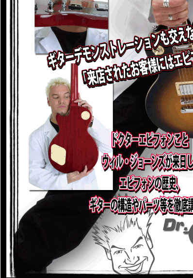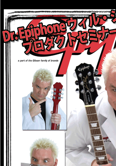 ドクター・エピフォンことウィル・ジョーンズ氏がクロサワ横浜店に登場!! エピフォンの歴史、ギターの構造やパーツに付いて等を徹底講義! ギターデモンストレーションも交えながら、エピフォン製品の秘密を大公開! 「来店されたお客様にはエピフォン購入優待券をプレゼント!」 参加頂いた方に抽選を行い、当選者様には「エピフォン・ギター」を1本贈呈致します!!! |