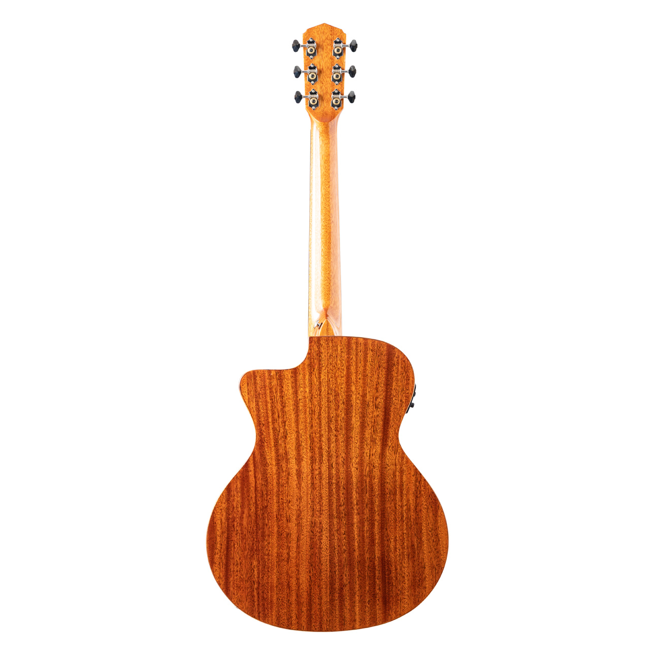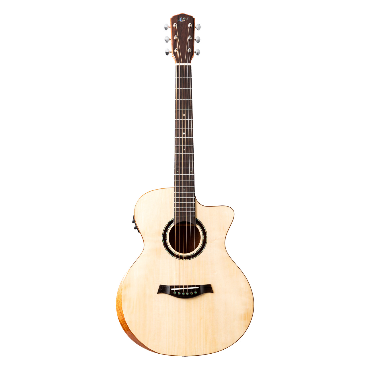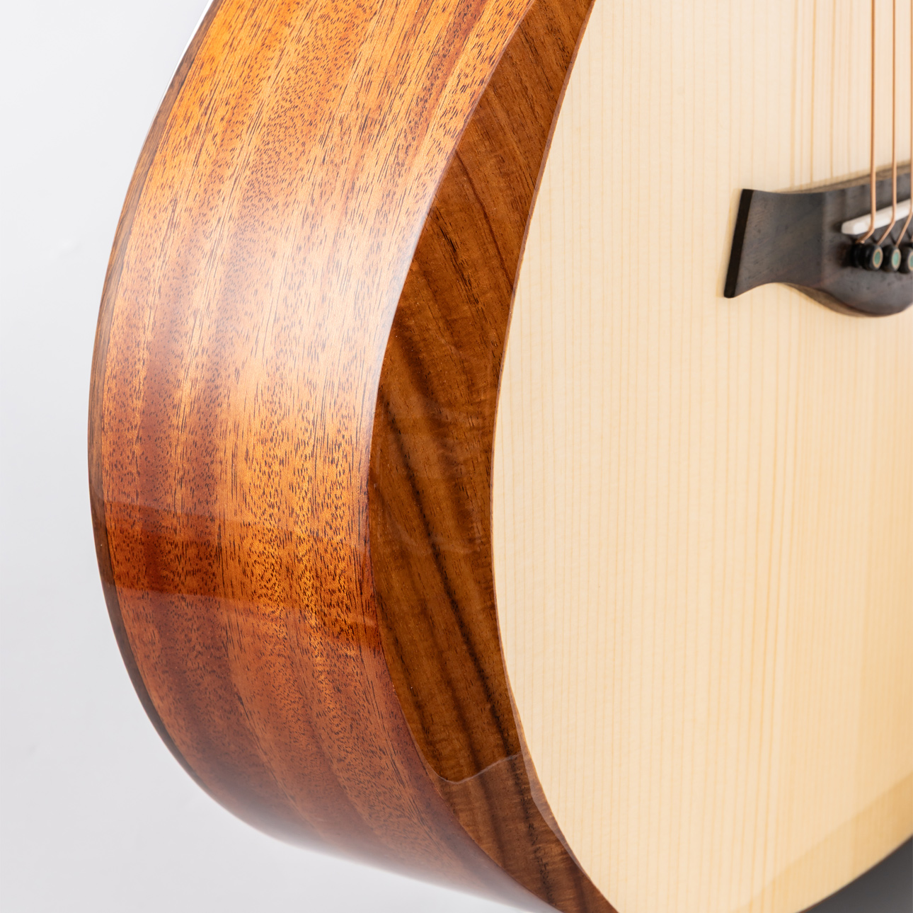 トップはスプルース単板。サイドバックはマホガニー。スケールは596mmと短くなり、⼩ぶりなボディサイズになることでよりお⼦様や⼥性にもおすすめの、軽く抱えやすいモデル。