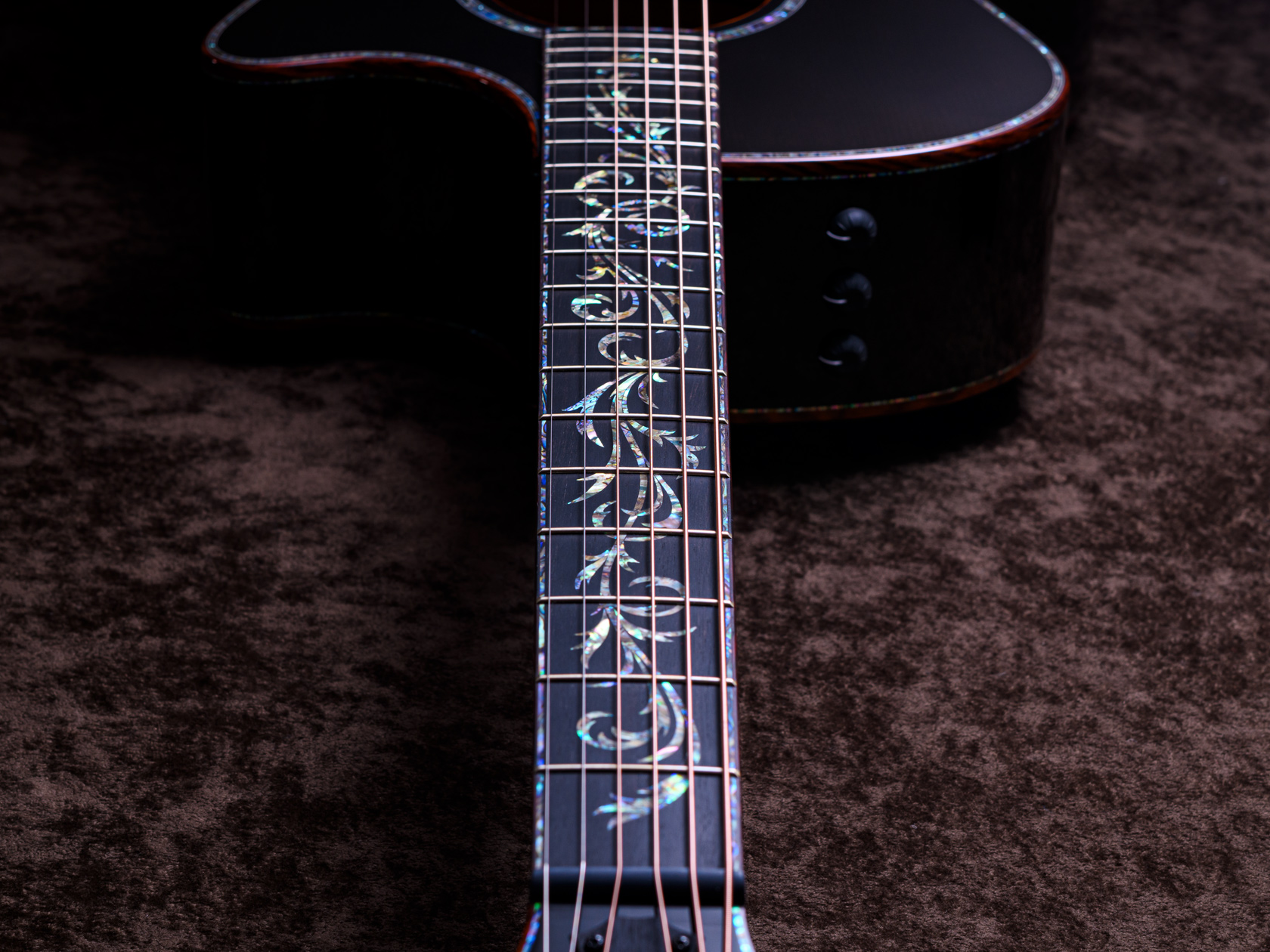 インレイには豪華な Byzantine (アバロン)を採用しましたので、これでもかと言うような豪華な作りとなっております。音に拘った Performance Bracing 採用、900シリーズ同様薄い塗装厚にしている為、迫力のあるサウンドもお楽しみいただけます!!